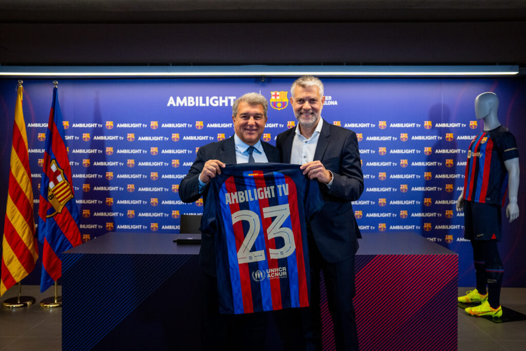 The deal will involve the Ambilight TV name appearing on the sleeve of the men’s football shirt from the very next Liga fixture, in which Barça are at home to Mallorca, this weekend at Spotify Camp Nou.