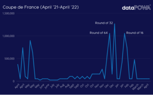Across our time span, searches for the Coupe de France surpassed the one million threshold in a single week just three times, and only once for events on the pitch.