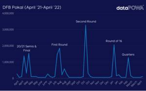 - A smaller spike (579,000) came a few weeks later when Bayern Munich concluded the round by hitting 12 past fifth-tier Bremer. By way of comparison, PSG’s 2-0 win over Monaco in the 2020/21 Coupe de France final attracted only a slightly bigger spike: 632,000.