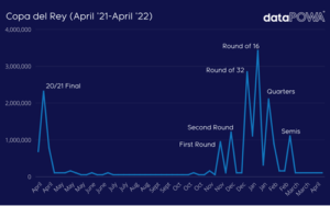 - With this year’s semi-final first leg (1.1m) and last year’s final (2.3m) attracting high search volume as well, the Copa del Rey achieves what the Coupe de France and Coppa Italia fail to: consistent high volume across the entire tournament.