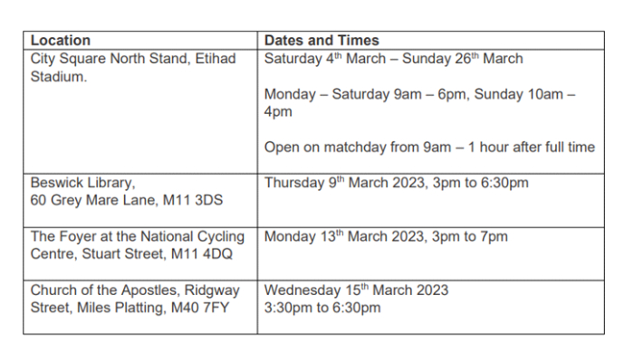 Fans and the local community can also visit a temporary exhibition space in City Square at the Etihad Stadium, which will be open from Saturday 4th March – Sunday 26th March or attend one of three consultation events in East Manchester.